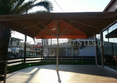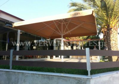 Όλα τα μεταλλικά μέρη στις επαγγελματικές ομπρέλες, είναι από ειδικό προφίλ αλουμινίου. Βάφονται ηλεκτροστατικά σε μεταλλικό χρώμα τύπου RAL προκειμένου να αποφευχθεί στο μέγιστο η εμφάνιση οξείδωσης και να παραταθεί όσο γίνεται περισσότερο η φυσιολογική φθορά.