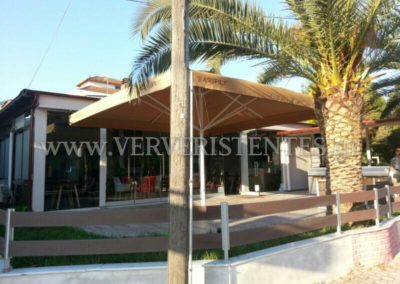 Το υλικό κάλυψης που χρησιμοποιείται σε όλες τις επαγγελματικές ομπρέλες βαρέως τύπου, είναι ακρυλικό ύφασμα εισαγωγής του αυστριακού οίκου SATTLER. Πρόκειται για ύφασμα 100% αδιάβροχο, εξαιρετικής αντοχής σε ακραίες καιρικές συνθήκες και φέρει επίσημη πιστοποίηση προστασίας από την υπεριώδη ηλιακή ακτινοβολία UV. Προσφέρει, δε, πενταετή εγγύηση.